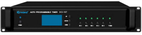 DCI-16T一款实现系统定时功能的主设备,可以定时接通和关闭后排的电源输出,方便系统设备进行定时开关机。它有6路定时输出通道(五路电源输出和一路短路输出),短路输出可用于激活电源时序器DCI-28S。
