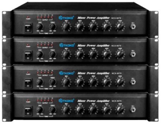 3、各输入通道音量独立调节(网络输入音频信号与线路AUX1为同一音量电位器控制)、高音、低音独立调节