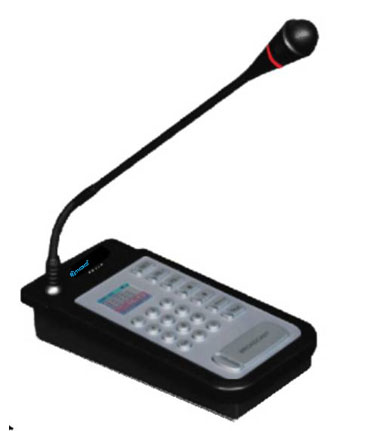 2、带话筒直接输入,对权限允许区域广播讲话(具有提示音),红色提示灯,通话自动点亮;